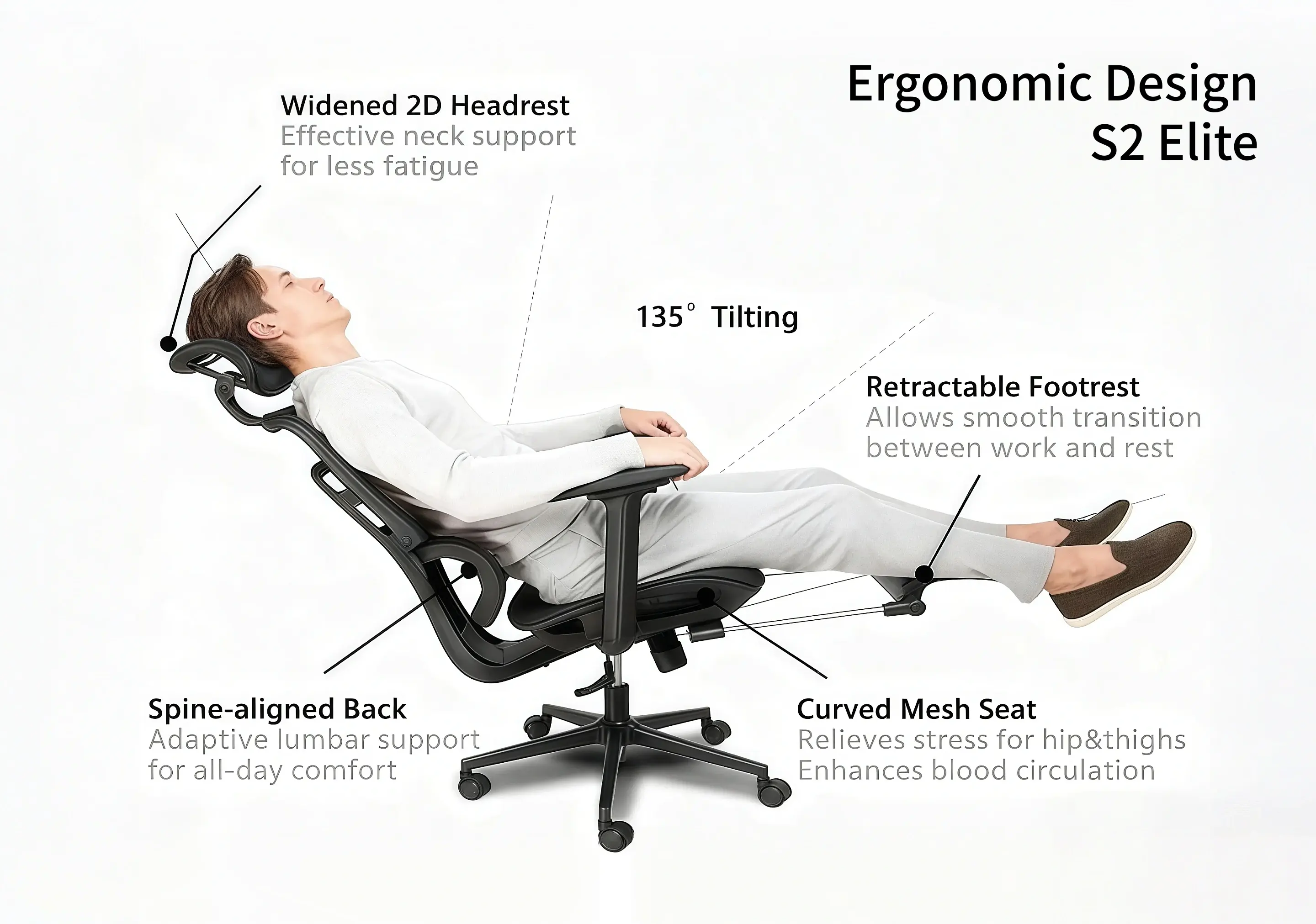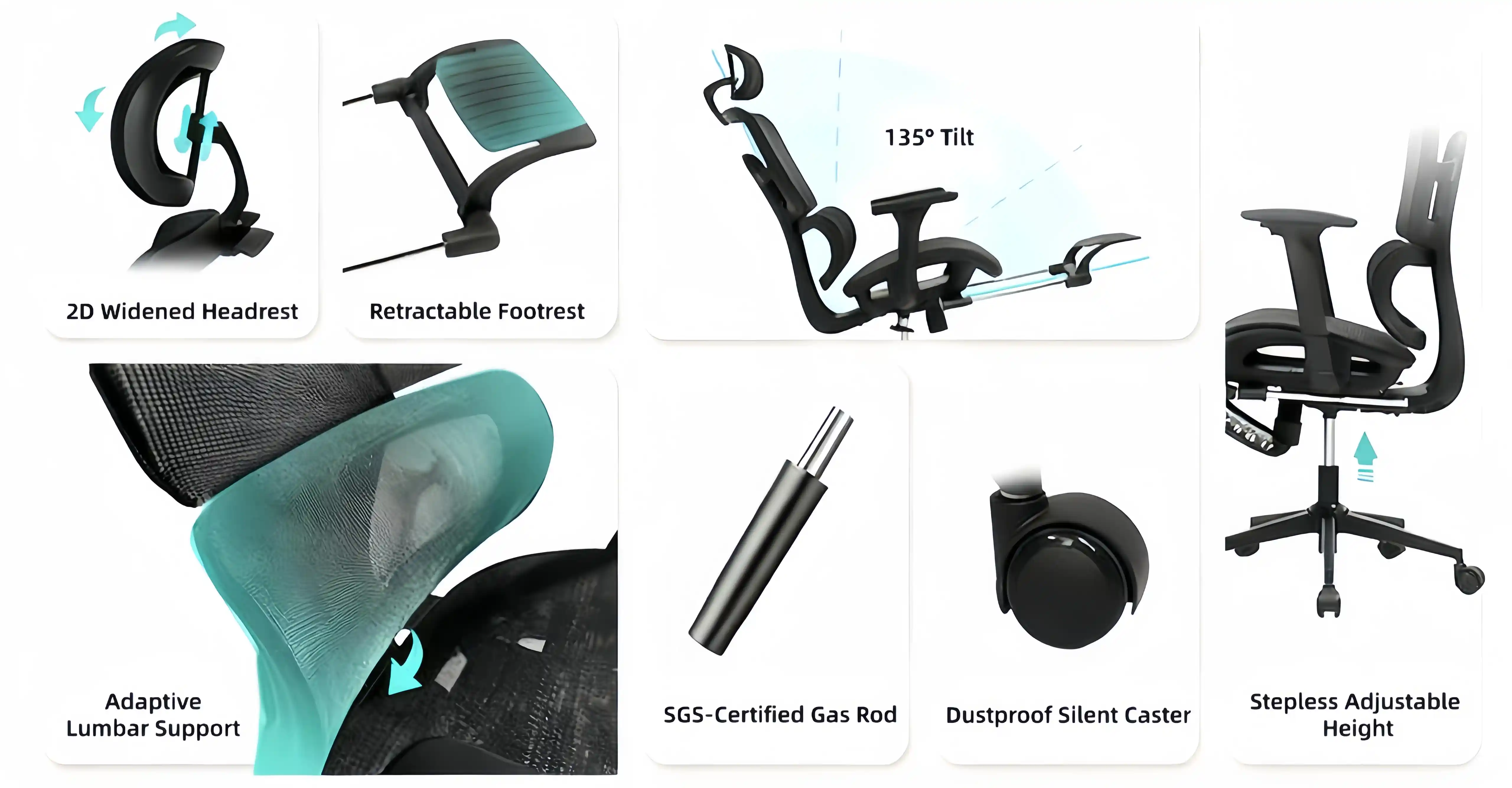 - 4D armrests + 2D headrest deliver micro-precision adjustments—lock in personalized comfort for work, read or relax in seconds.
