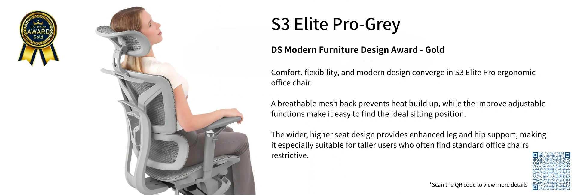RIEIOR S3 Elite Pro Ergonomic Chair (Grey)