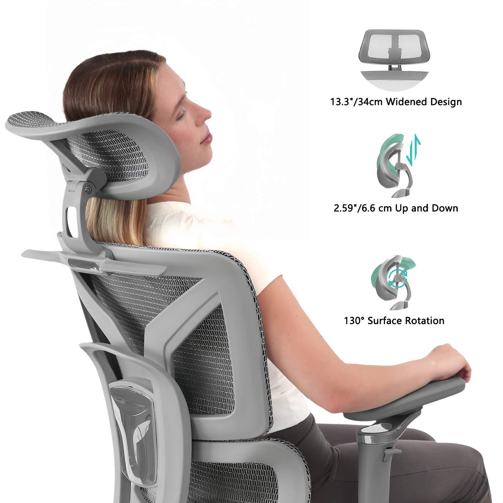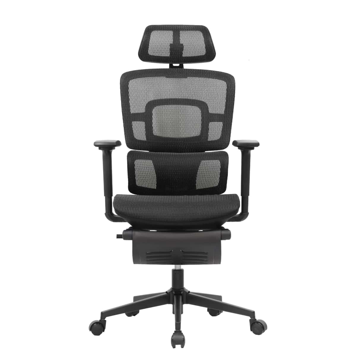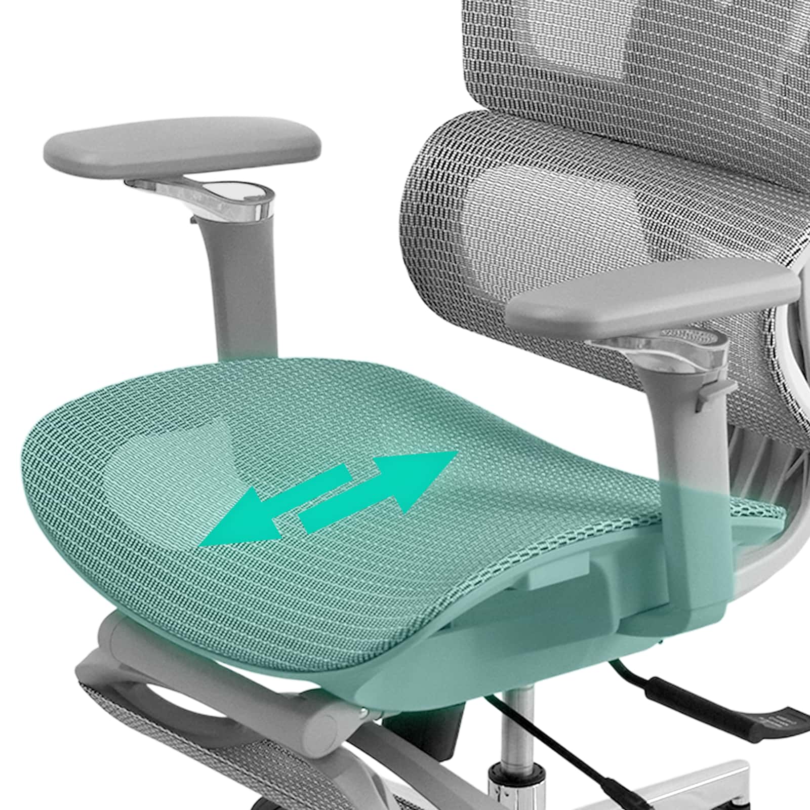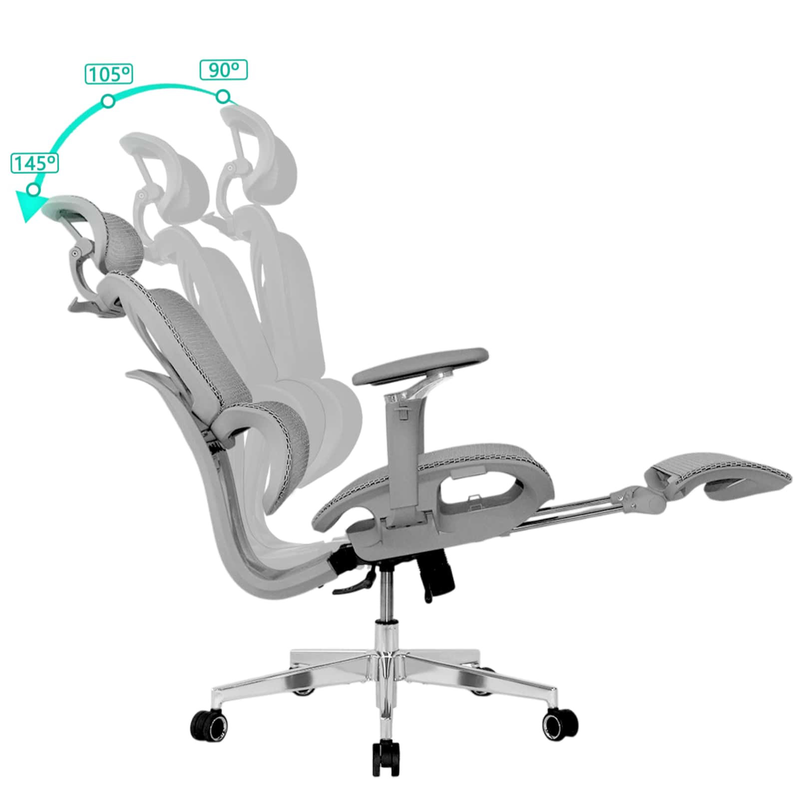- This chair adapts to you—featuring a 2D adjustable headrest, adaptive lumbar support, seat depth control, 145° reclining backrest, and 18-inch retractable mesh footrest.